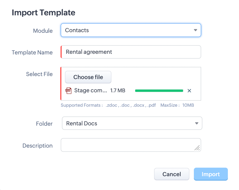 - Fă clic pe Import Template.