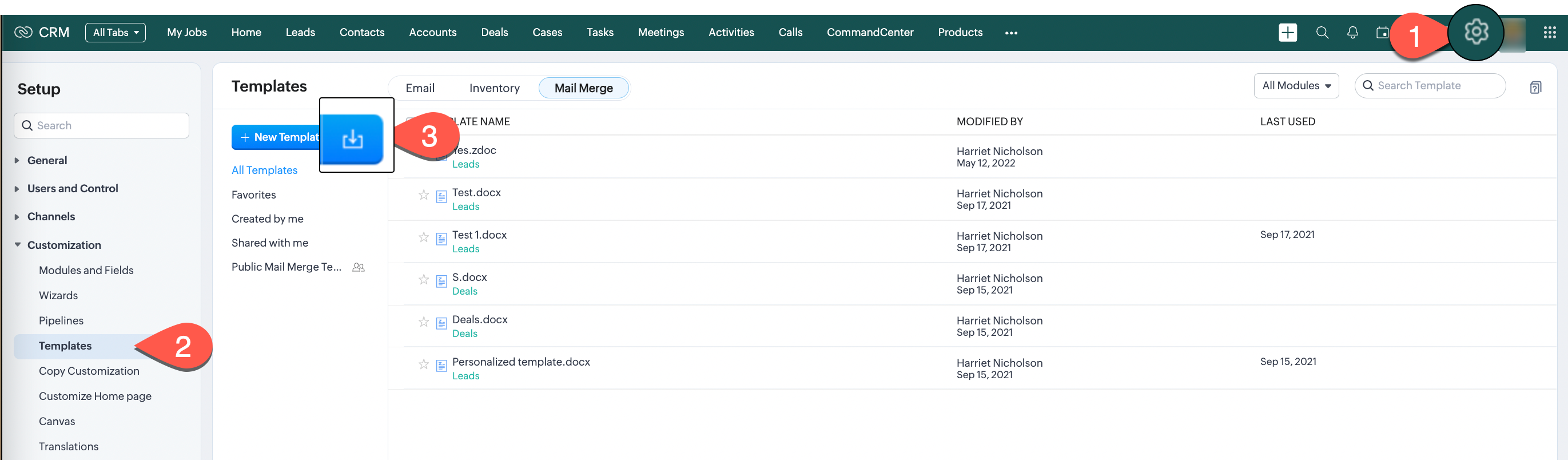 - Accesează Setup > Customization > Templates > Mail Merge Templates.