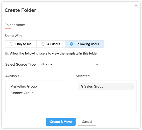 - Selectează Folder din lista derulantă. Șablonul va fi stocat în folderul pe care îl selectezi.