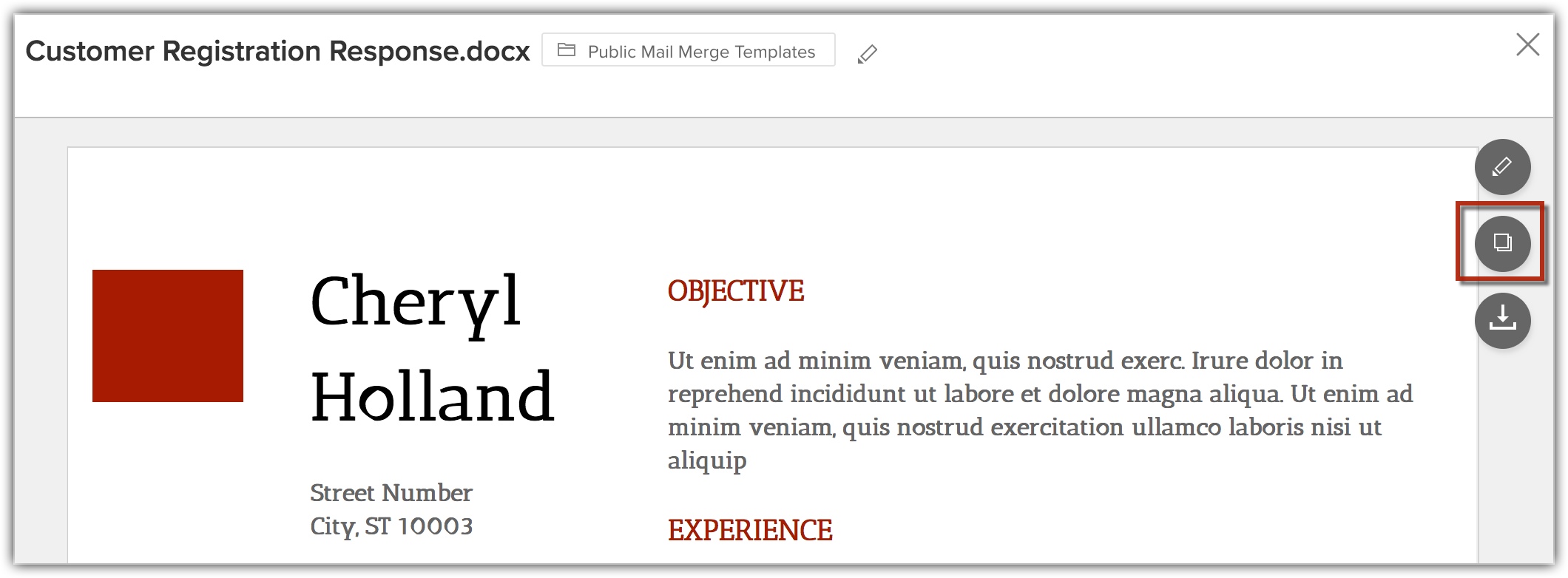 - Accesează documentul/șablonul mail merge în Zoho Writer.