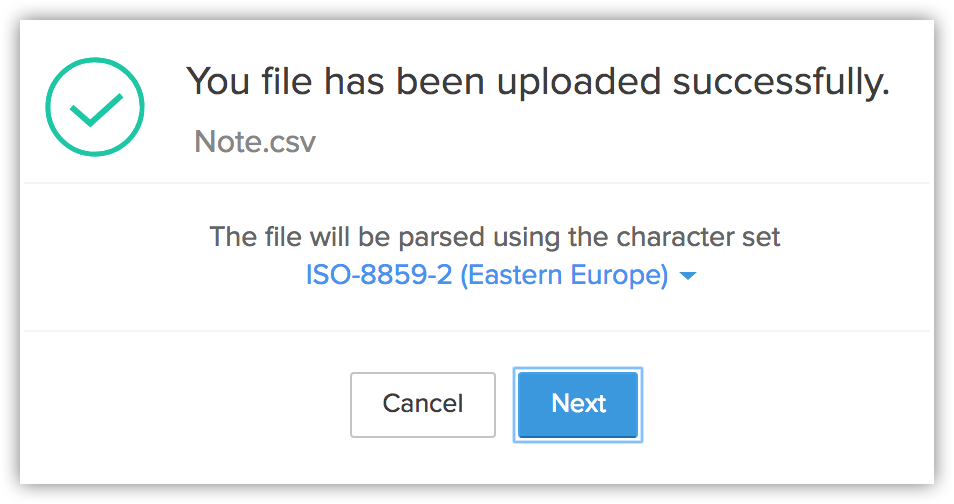 - Câmpurile unice nu sunt sensibile la majuscule/minuscule. Adică, dacă valoarea câmpului unic din fișierul de import este "ABC" și în înregistrarea existentă este "abc", Zoho CRM va identifica totuși aceasta ca o potrivire.