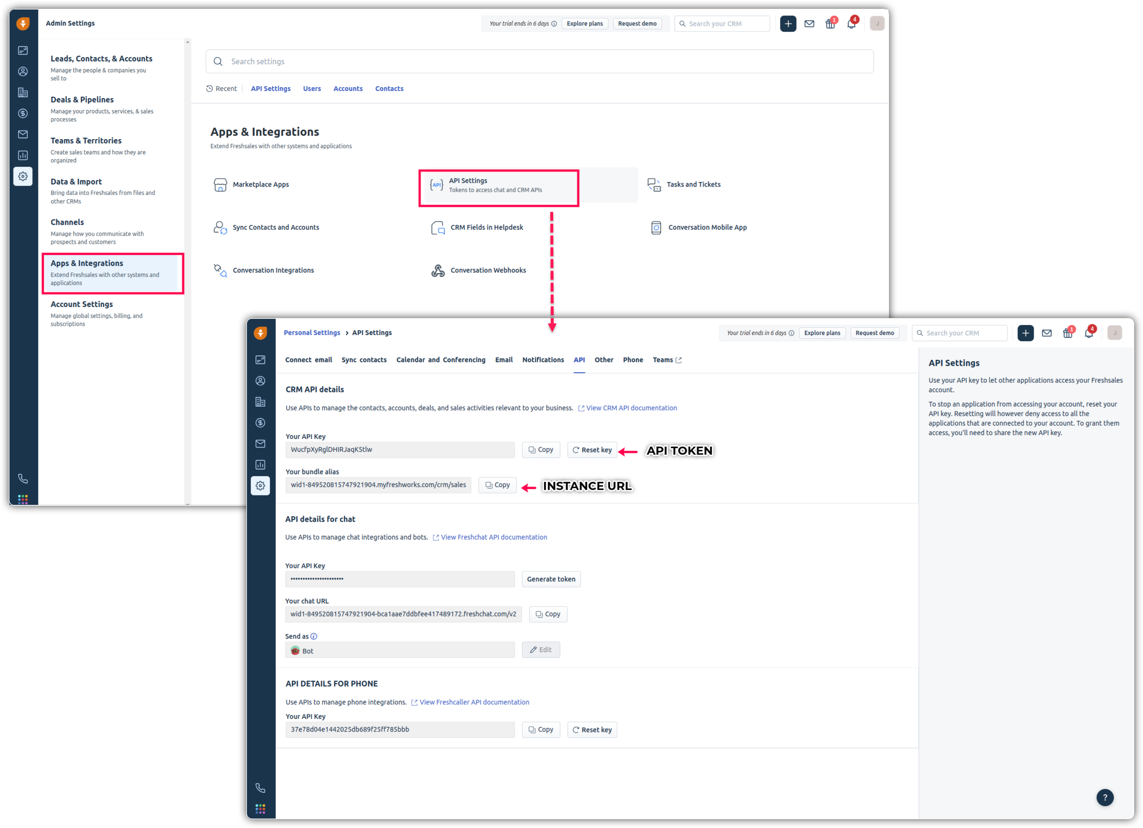 Pasul 1: Obține token-ul API și URL-ul instanței din Freshsales