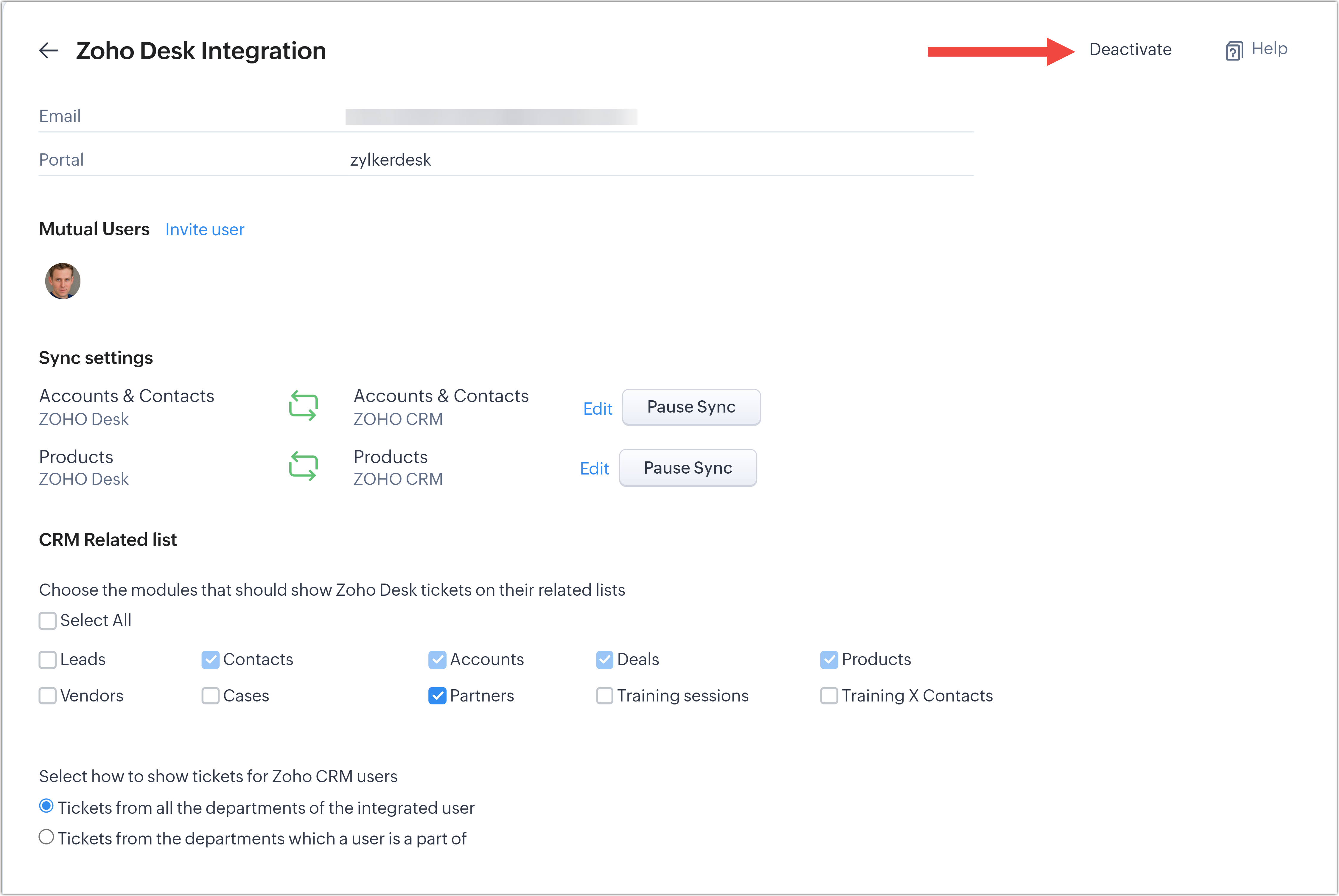 Sandbox-ul tău CRM este acum integrat cu contul tău Zoho Desk activ!