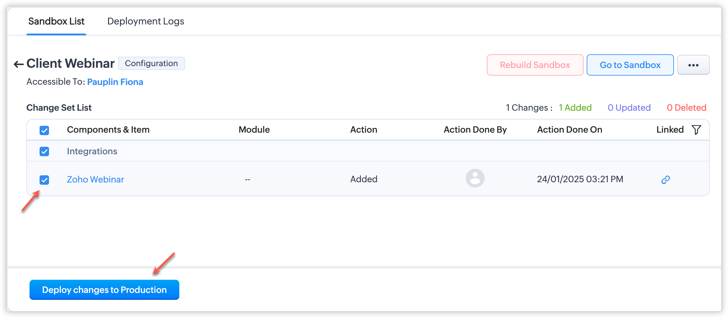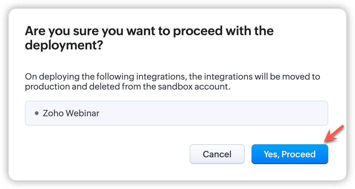 Implementarea integrării Zoho Webinar din Sandbox în Producție