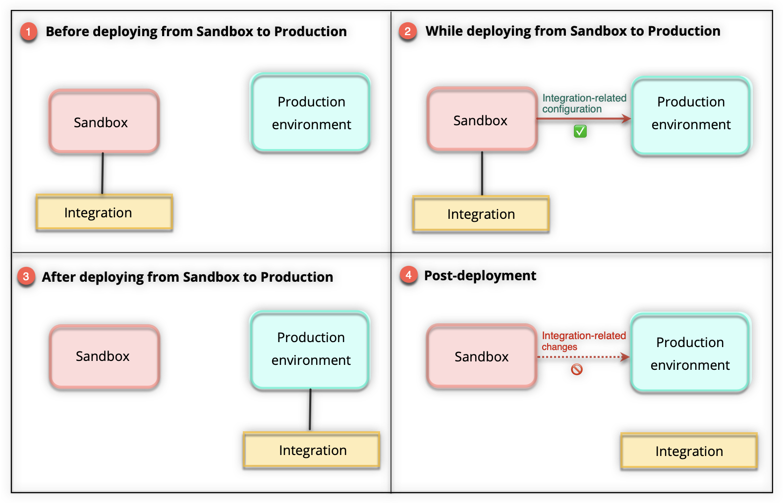 - După implementarea integrării, modificările legate de aceasta făcute în sandbox nu pot fi implementate în contul de producție.