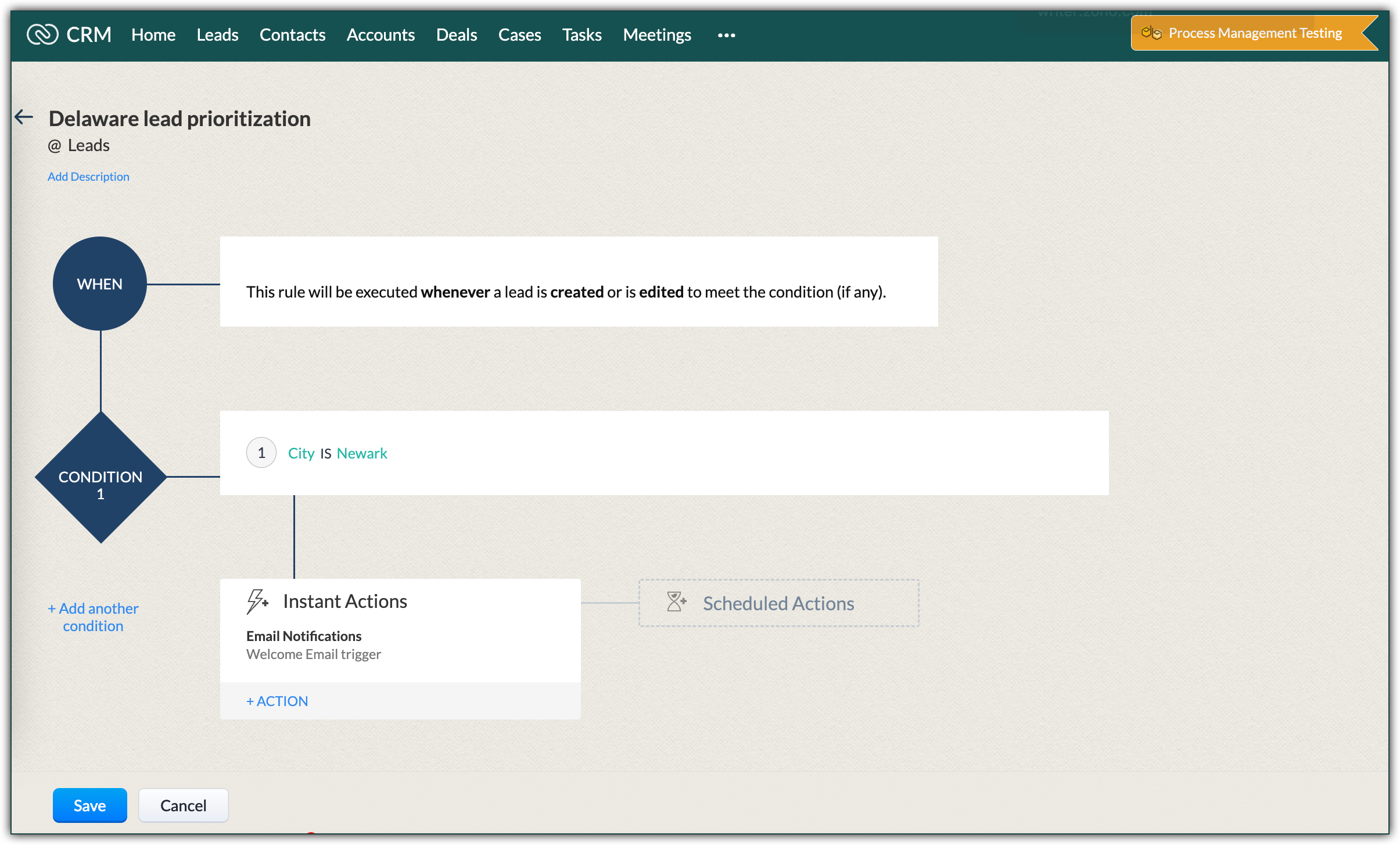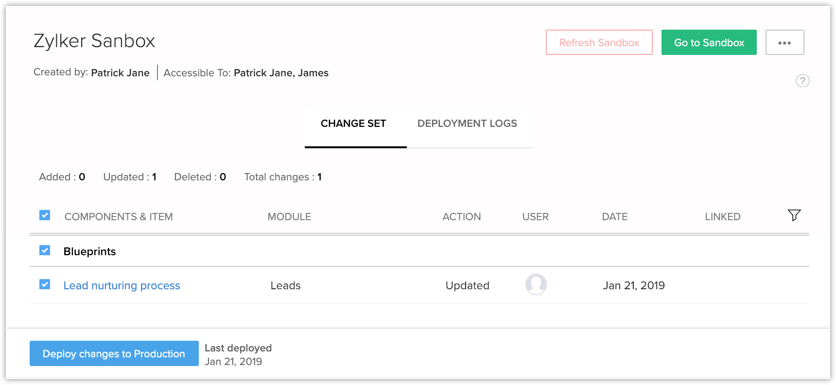 Un Blueprint care explică diferitele procese implicate în nurturarea lead-urilor este creat în mediul Sandbox. Aici poți verifica cum funcționează cu ajutorul înregistrărilor CRM. Când ești mulțumit de blueprint, poți implementa modificările în producție.