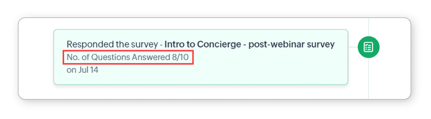 Survey | Responded the survey | Number of questions answered |