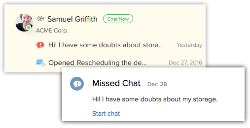 Conversațiile pierdute de la clienții tăi nu pot trece neobservate cu Signals. Dacă ai integrarea Zoho SalesIQ activată, vei fi notificat despre conversațiile pe care le-ai pierdut. Dacă clientul este online, poți vedea linkul Începe Conversația pentru a începe să interacționezi imediat.