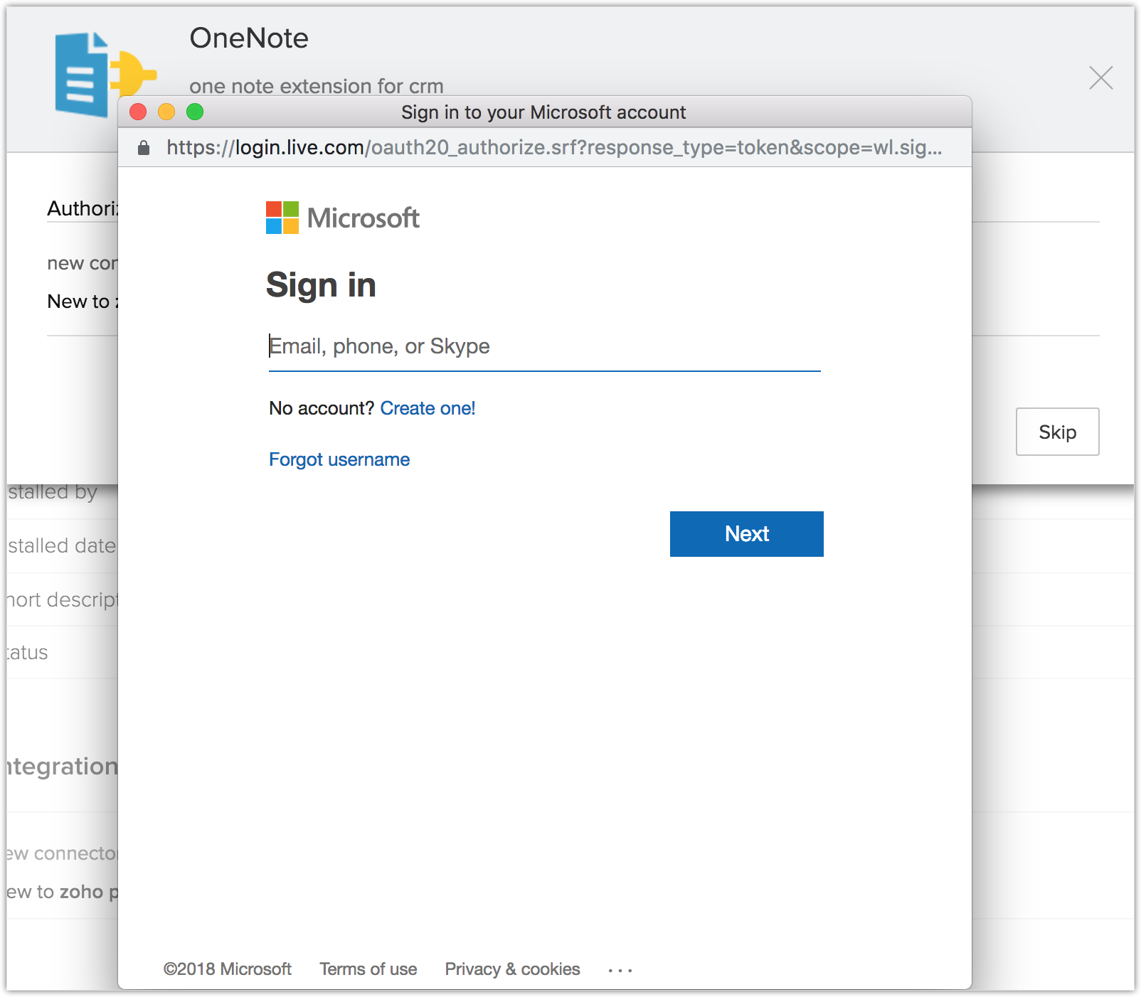 Poți instala extensia OneNote fie din Zoho Marketplace, fie te conectezi la contul tău Zoho CRM și o instalezi de acolo.