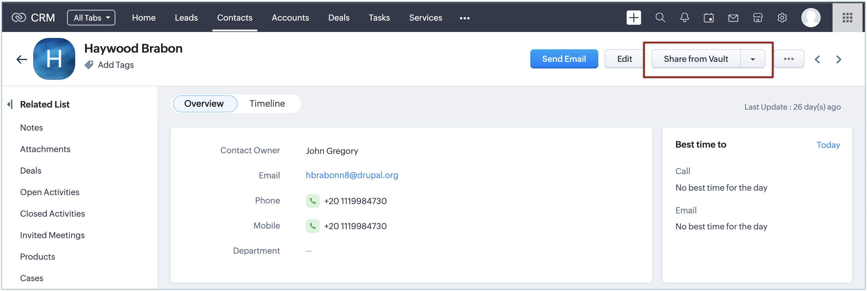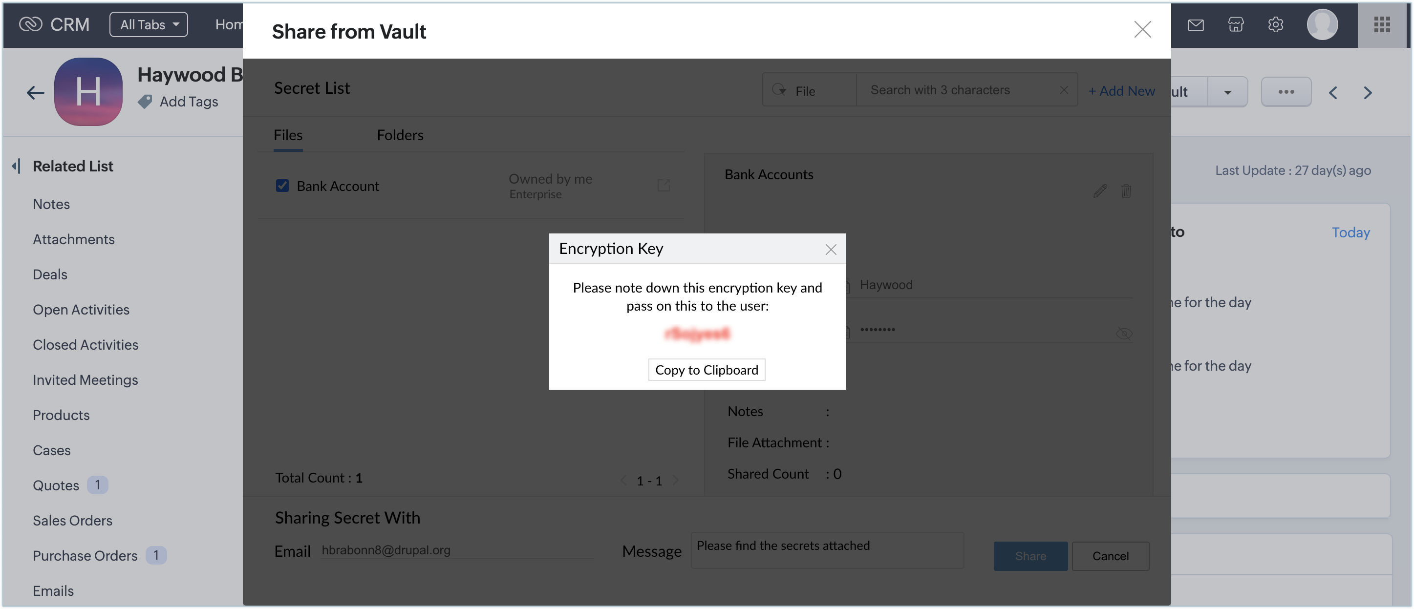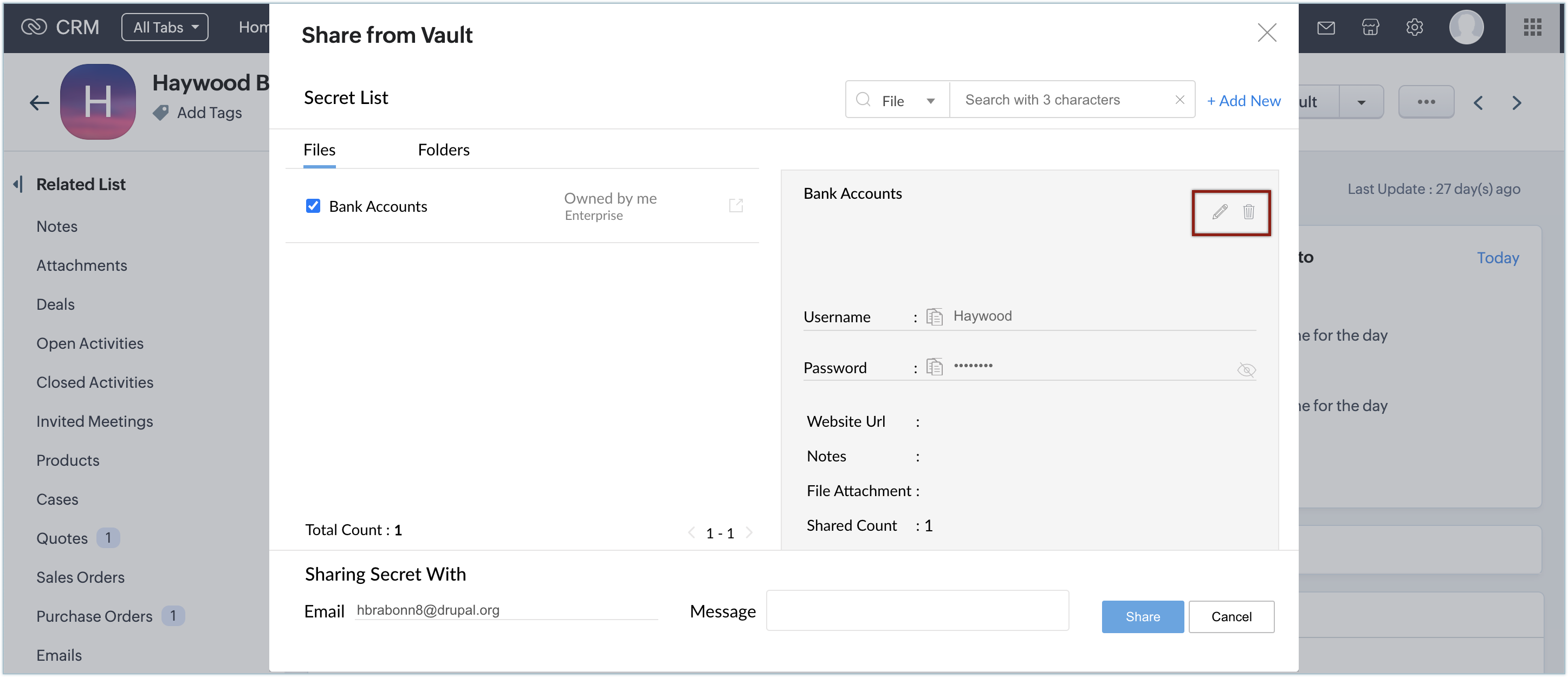 Toate secretele pe care le partajezi cu fiecare lead, contact și cont din Zoho CRM vor fi listate în lista asociată a acelei înregistrări.