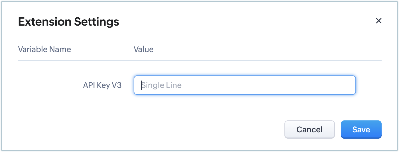Extensia va fi instalată automat pentru utilizatorii specificați. - În fereastra pop-up, introdu API Key și apasă Save.