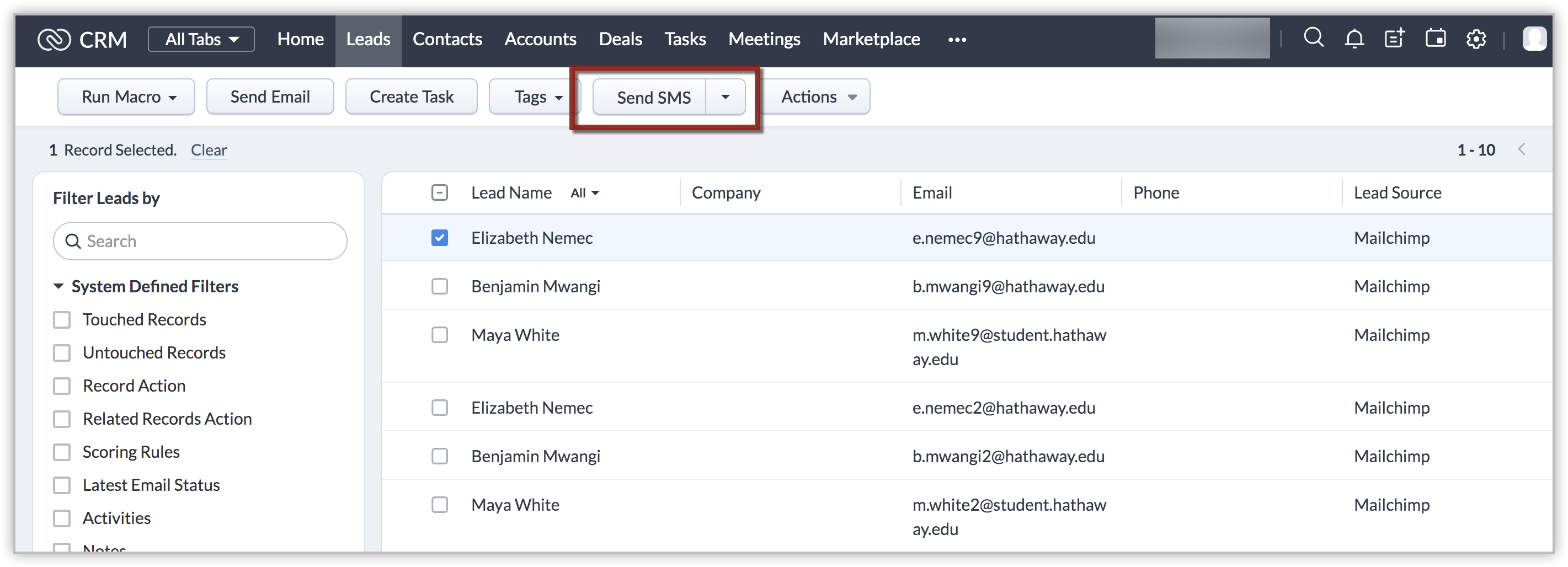Folosind extensia, poți trimite mesaje SMS către lead-uri sau contacte individual, sau către un grup de lead-uri sau contacte ca mesaje SMS în masă.