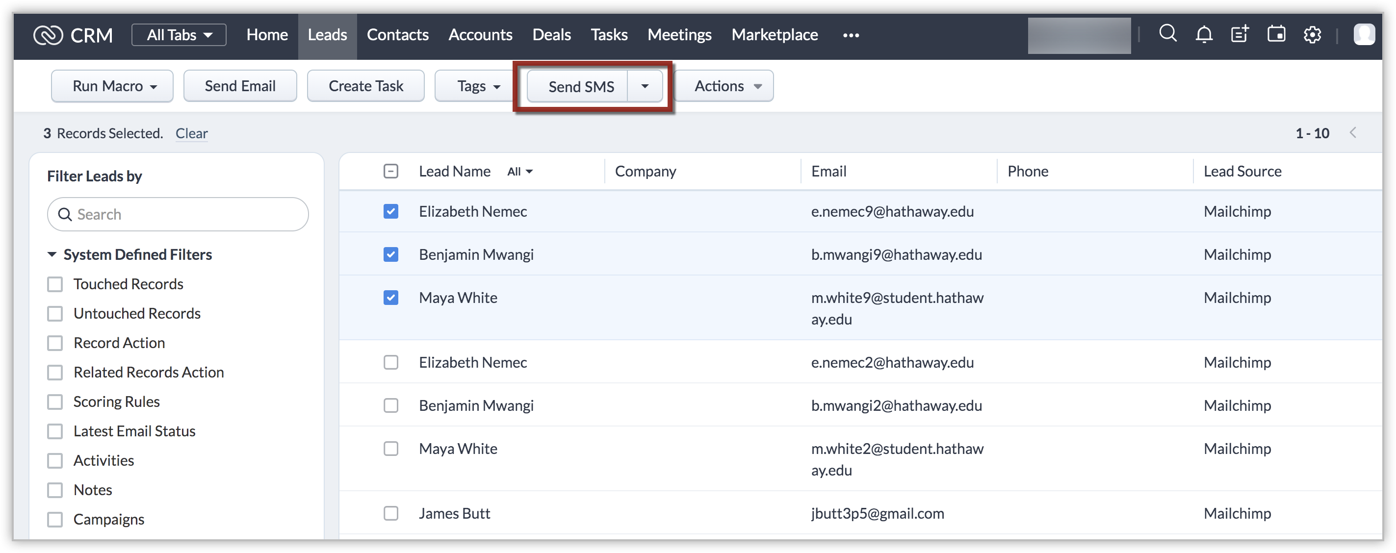 - Alege lista de lead-uri sau contacte din modulul Leads sau Contacts, respectiv.
