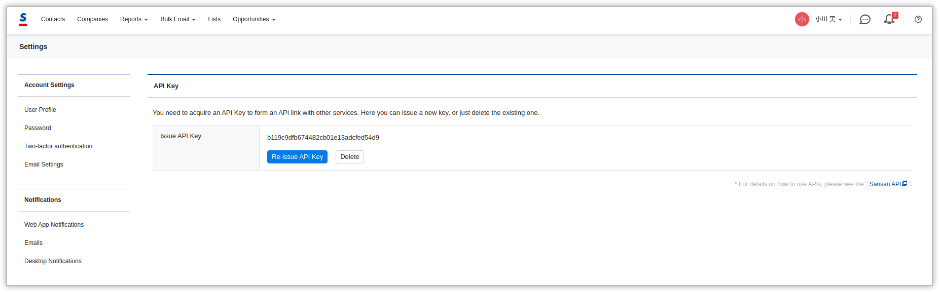 - Pentru a obține cheia API, mergi la panoul de control Sansan și copiază cheia Issue API.