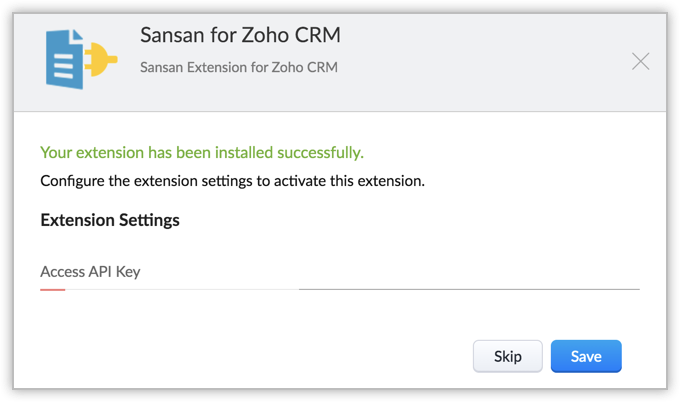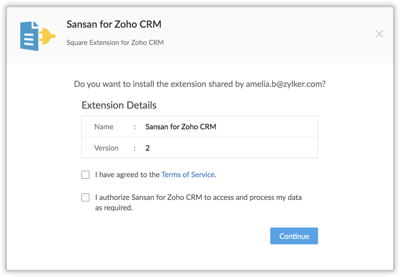 Notă: Te rugăm să reții că extensia Sansan pentru Zoho CRM este disponibilă în US, EU, CN, IN, AU, CA, SA, și JP datacentere.