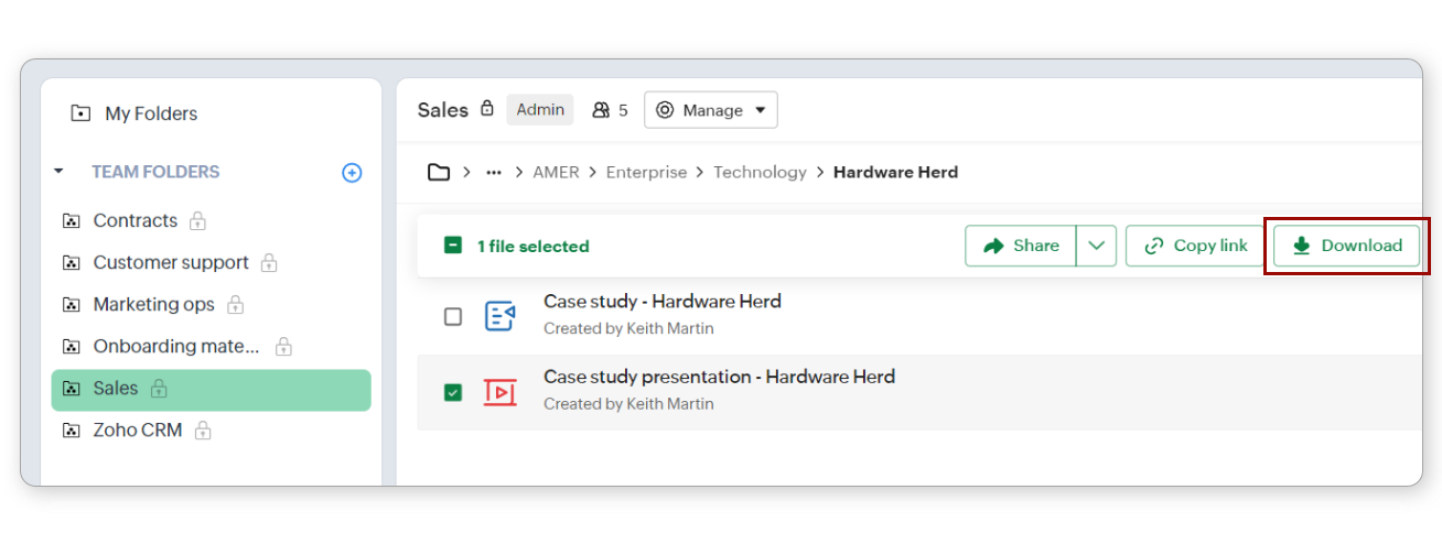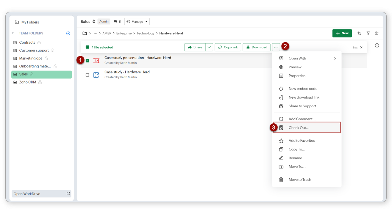 Notă: Dacă ai activat opțiunea Convert all files to Zoho WorkDrive's format on upload în setările unui folder de echipă, fișierul încărcat va fi convertit dacă există un format Zoho WorkDrive corespunzător.
