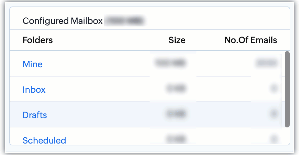 Stocarea emailurilor se calculează pe baza emailurilor stocate în Zoho CRM. Deoarece emailurile generate prin Zoho CRM sunt frecvent utilizate de companii, atât conținutul emailurilor, cât și atașamentele din acestea sunt stocate. Având în vedere configurarea căsuței poștale, avem emailuri POP și IMAP. Emailurile POP, așa cum știm cu toții, sunt concepute pentru stocare locală, astfel încât atașamentele din astfel de emailuri sunt de asemenea salvate. Atașamentele din emailurile IMAP nu sunt stocate implicit, deoarece IMAP folosește un API pentru a le prelua de fiecare dată când le accesezi.
