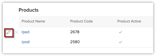 - În lista asociată Products, treci cu mouse-ul peste produsul corespunzător și apasă pe pictograma de editare.