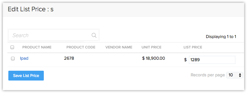 - În modulul Price Books, apasă pe o înregistrare specifică pe care dorești să o clonezi.