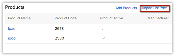 - În lista asociată Products, apasă pe linkul Import List Price.
