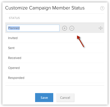 - În fereastra pop-up Customize Campaign Member Status, toate valorile de status vor fi listate. Poți efectua următoarele: