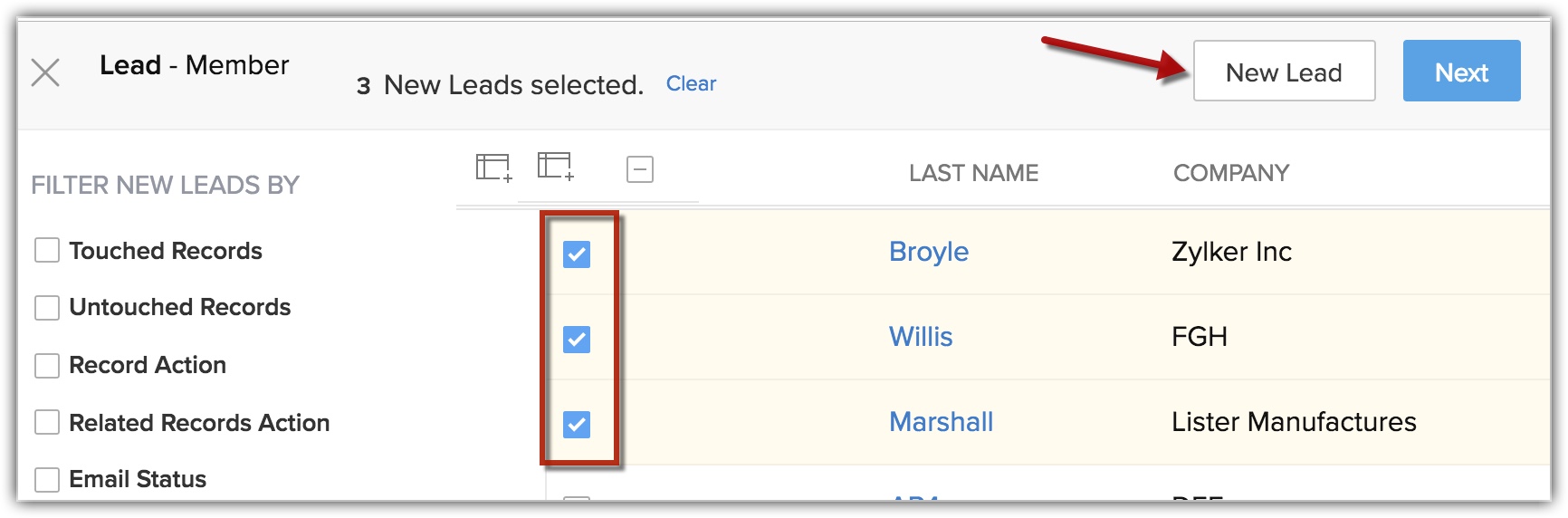 - Selectează Lead/Contact din listă și dă clic pe Next.