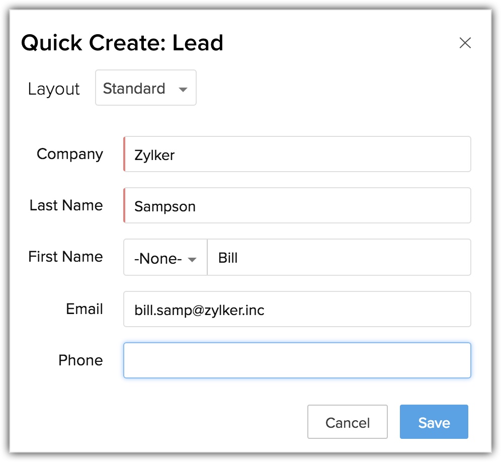 - În pagina Quick Create, introdu detaliile și dă clic pe Save.