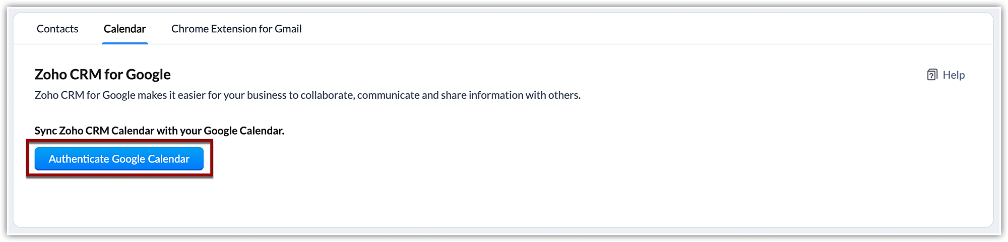 - În Zoho CRM, mergi la Configurare > Marketplace > Google > Calendar.