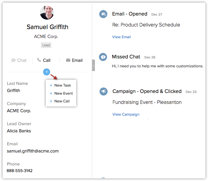Au trecut vremurile când clienții comunicau cu brandul tău doar prin intermediul managerilor de relații. Acum clienții au multiple canale prin care comunică cu compania ta. De la vizitarea site-ului tău până la completarea sondajelor, de la deschiderea tichetelor de suport până la postarea pe Twitter și Facebook, clienții intră în contact cu mai multe persoane din diferite departamente ale organizației tale. Ca manager de relații, este foarte greu pentru tine să fii la curent cu toate aceste canale. Signals în Zoho CRM te ține informat în timp real despre interacțiunea clienților tăi cu brandul tău pe mai multe canale.