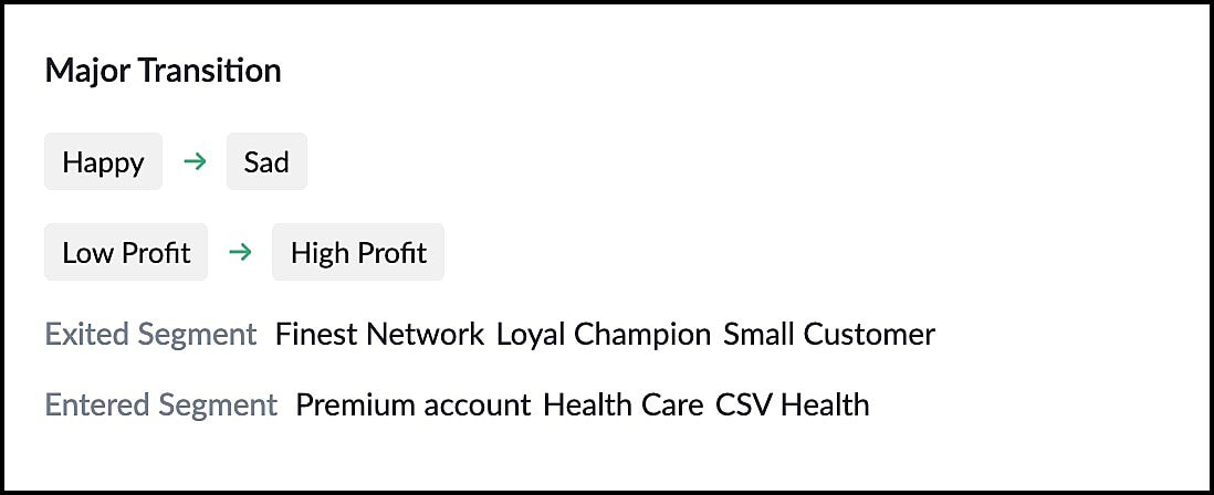 - Tranziția segmentelor - Afișează parcursul contului, detaliind tranzițiile de segment prin care a trecut.