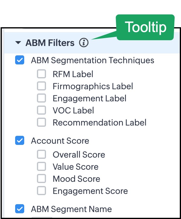 - Nume segment ABM - Aplică filtre conturilor folosind numele segmentelor din instrumentul ABM.