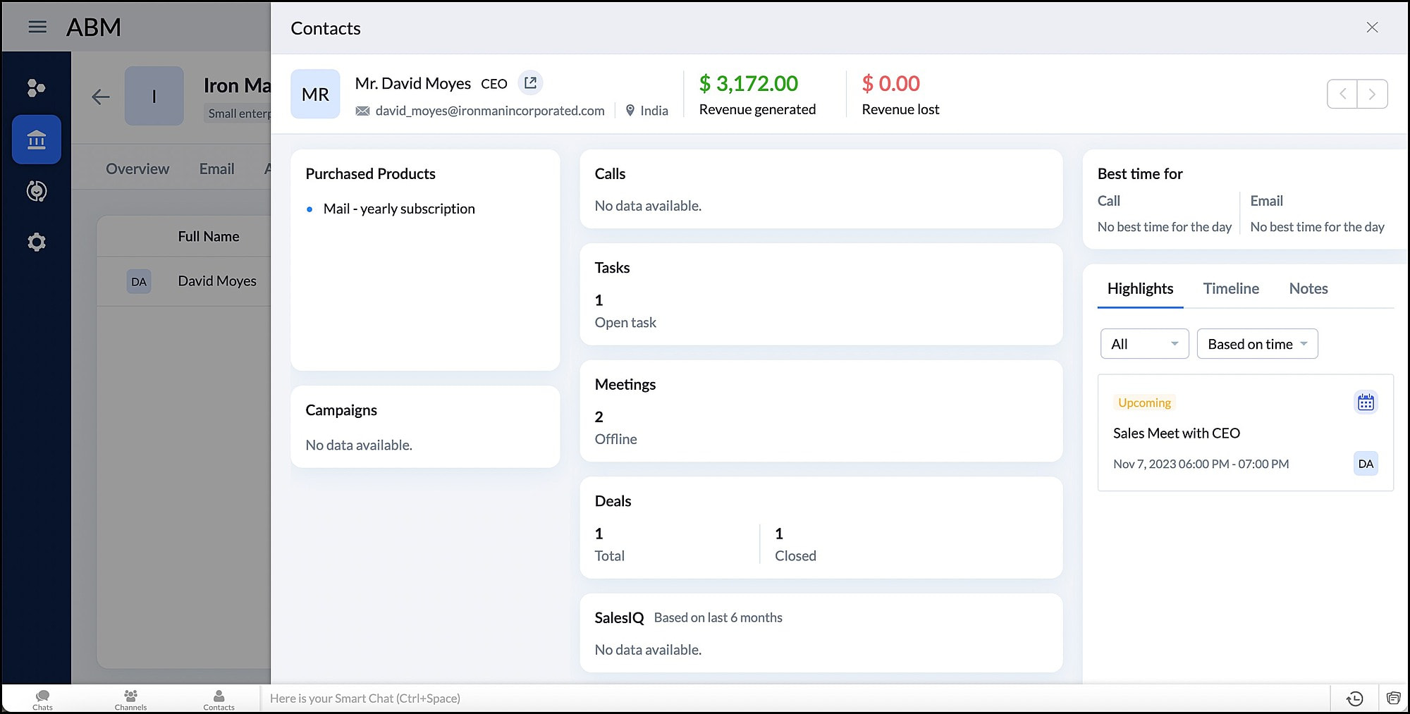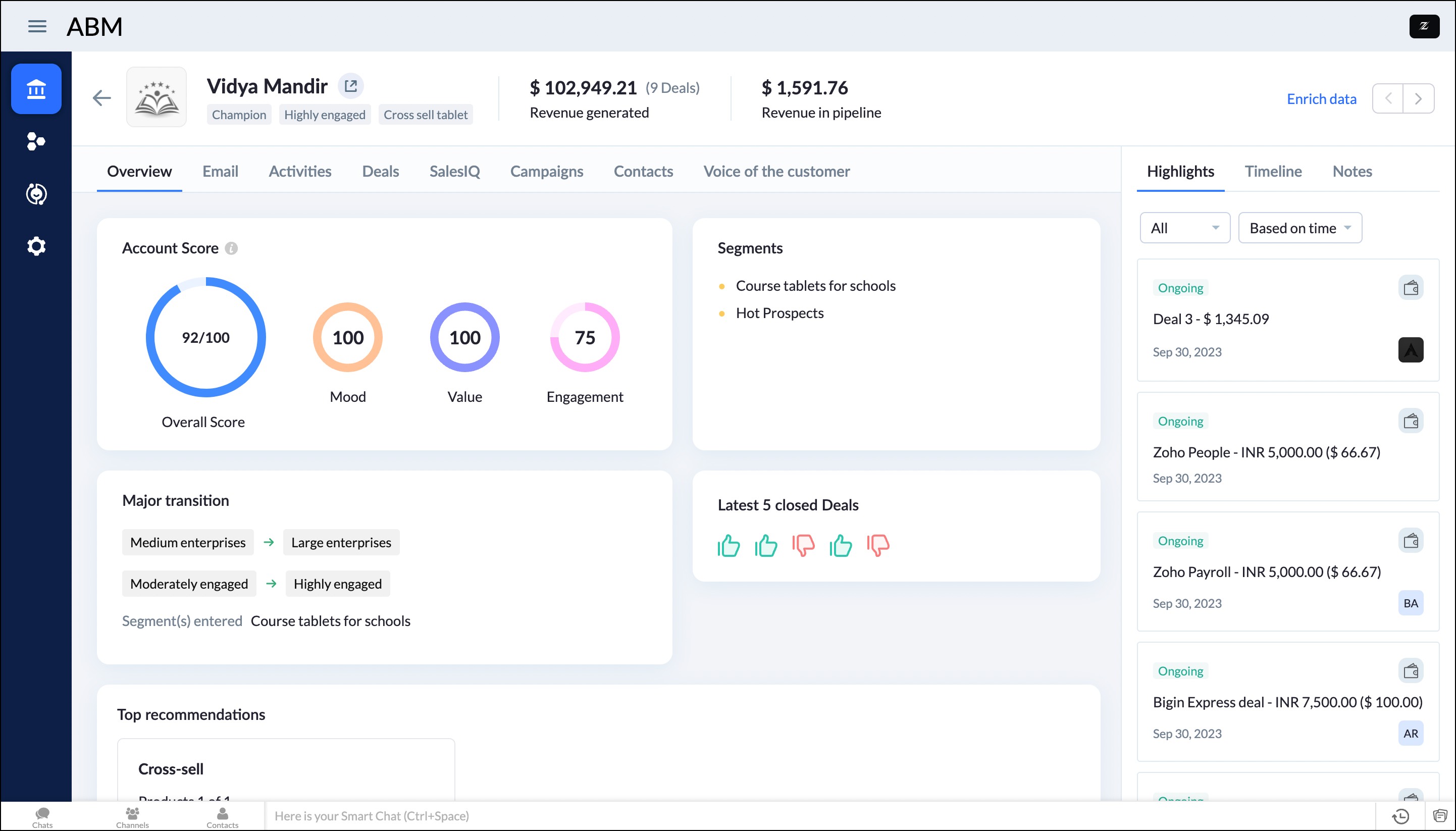 Superîncarcă echipa ta de vânzări cu widget-uri ABM și filtre inteligente, făcând foarte ușor conectarea cu conturile de top și creșterea eficienței!