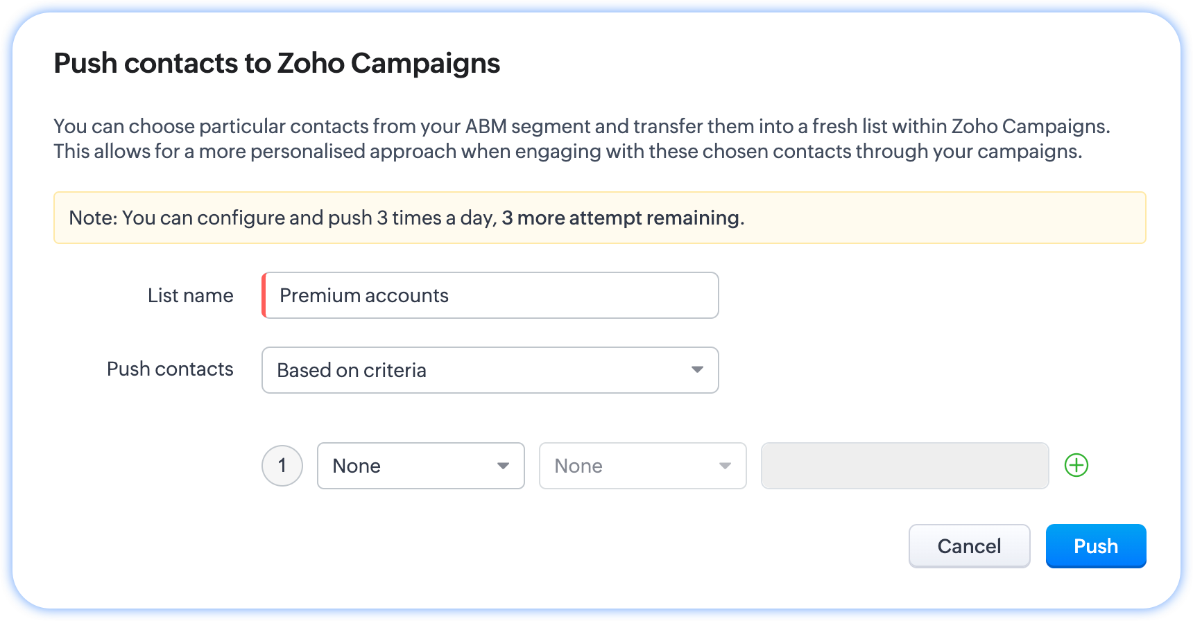 - Poți selecta doar factorii de decizie și îi poți trimite către Zoho Campaigns pentru a rula campanii publicitare targetate.
