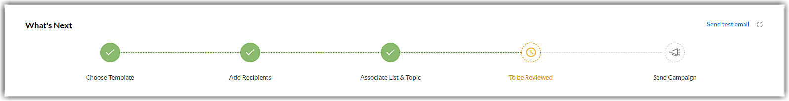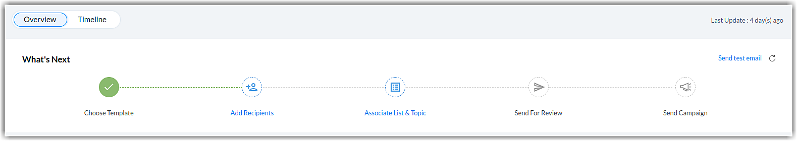 - Apasă Choose template în secțiunea What's Next din pagina de detalii a campaniei. Vei fi redirecționat către Zoho Campaigns.