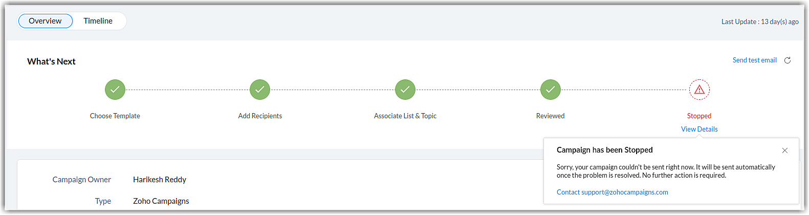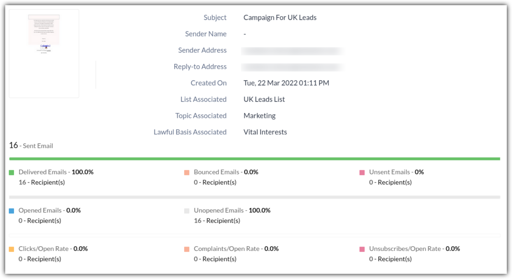 - Deschide o campanie recent finalizată de tipul Zoho Campaign.