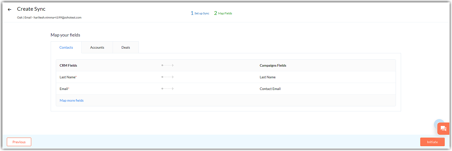 - Pe pagina Map Fields, mapează câmpurile CRM cu cele din Zoho Campaigns.
