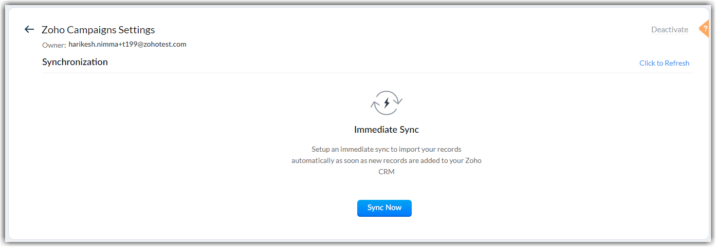 Vei fi redirecționat către pagina Zoho Campaigns pentru sincronizare.