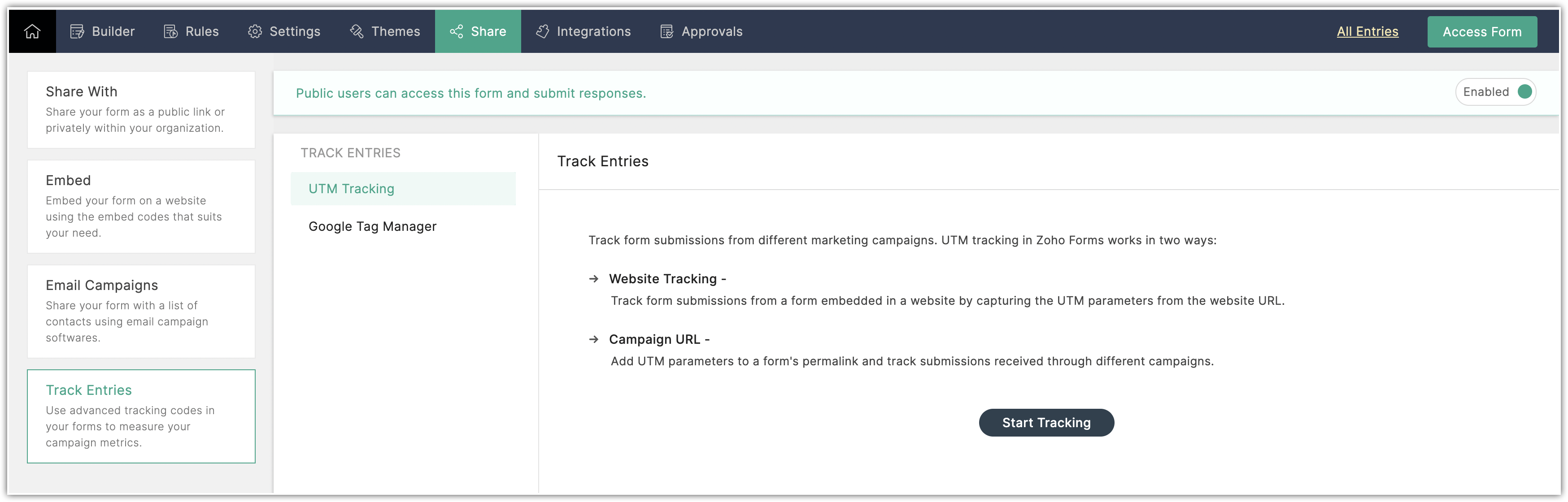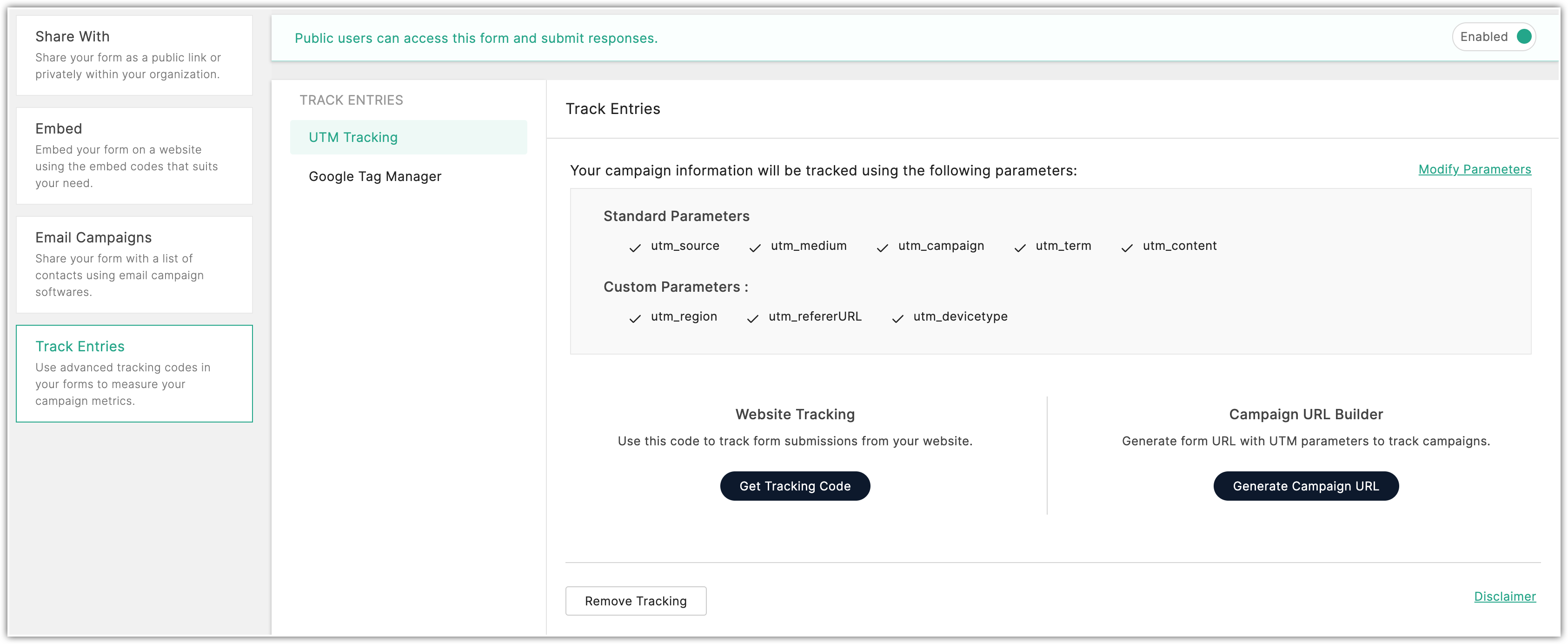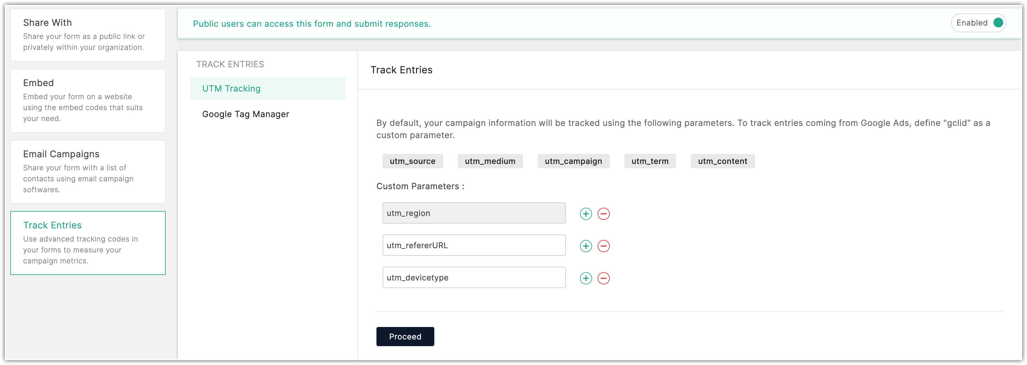- Selectează și folosește parametri de urmărire UTM când trimiți formularul sau îl incorporezi într-un șablon.