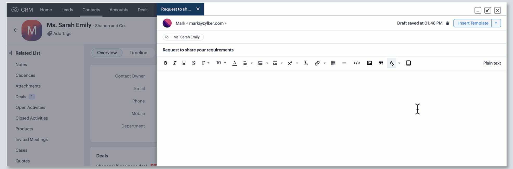 - Trimite un formular personalizat - Adăugarea câmpului Zoho CRM îți permite să trimiți clienților existenți un formular personalizat care conține detaliile lor importante pre-populate.