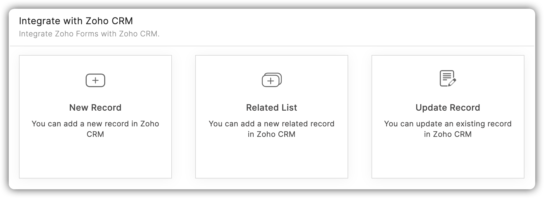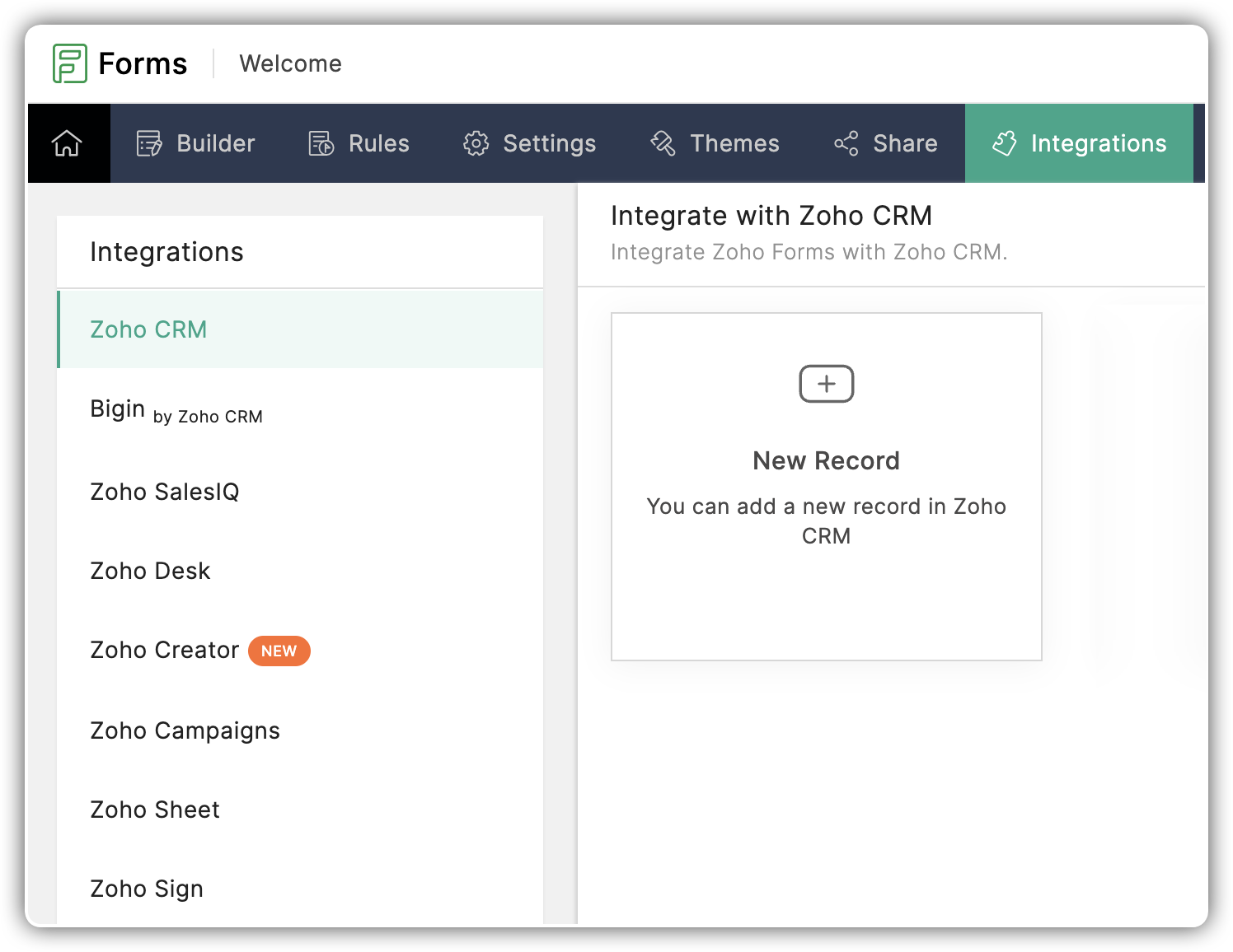 Pentru a integra Zoho Forms din Zoho CRM