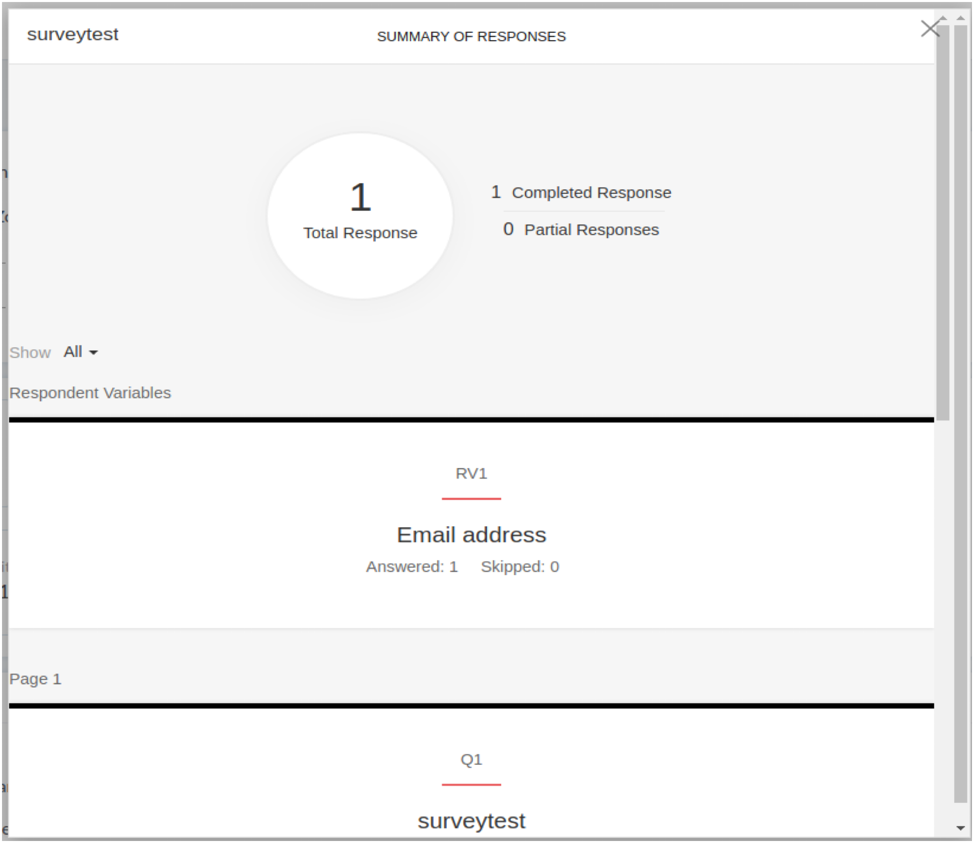 - Raport sumar - Fă clic pe Summary Report pentru a vizualiza detaliile răspunsului general la sondaj.