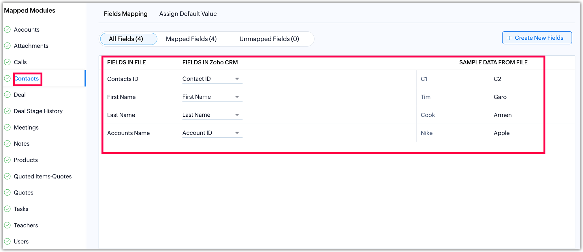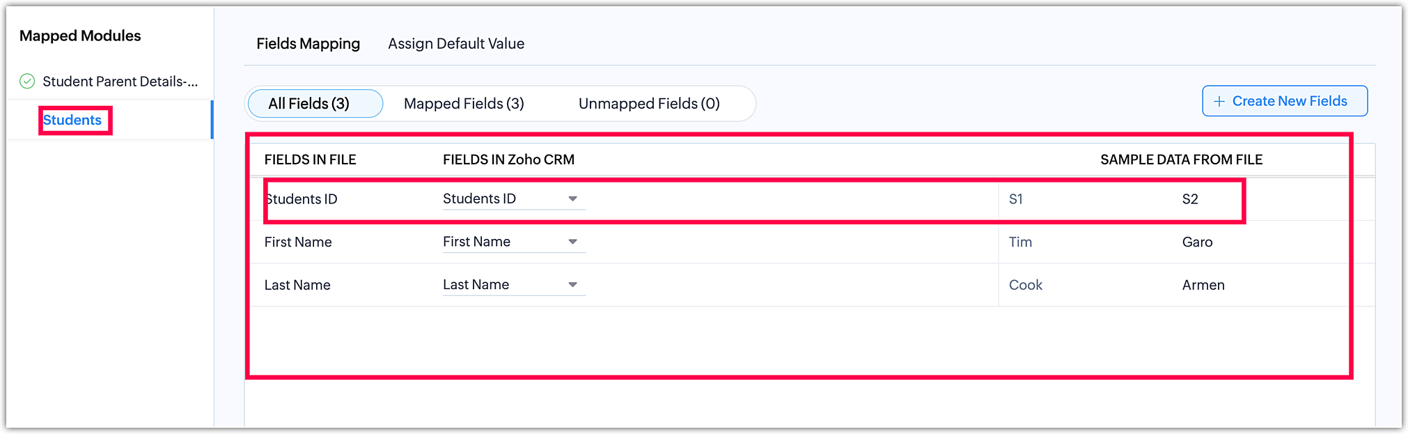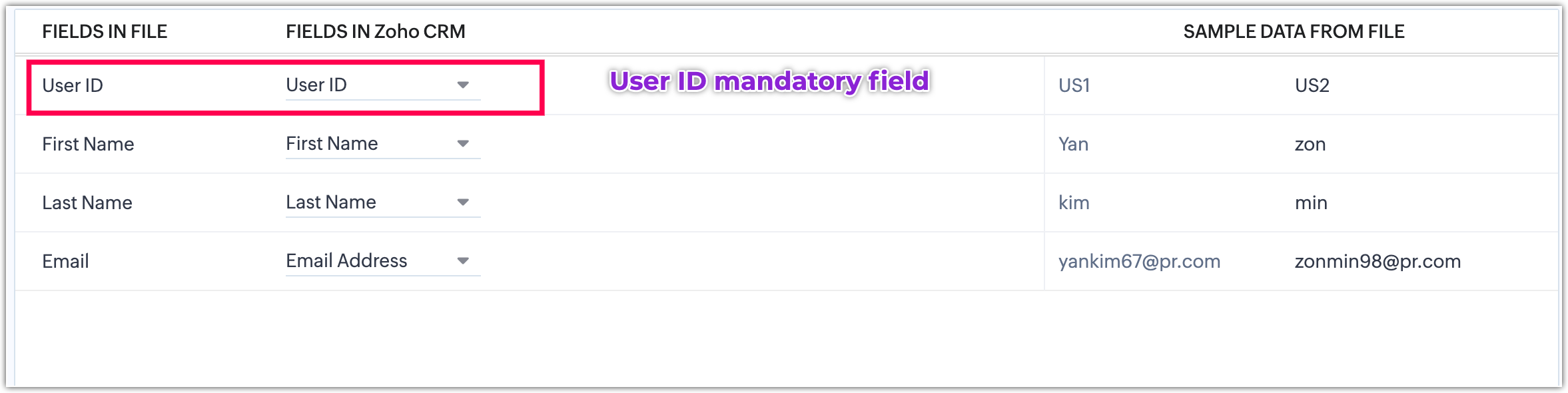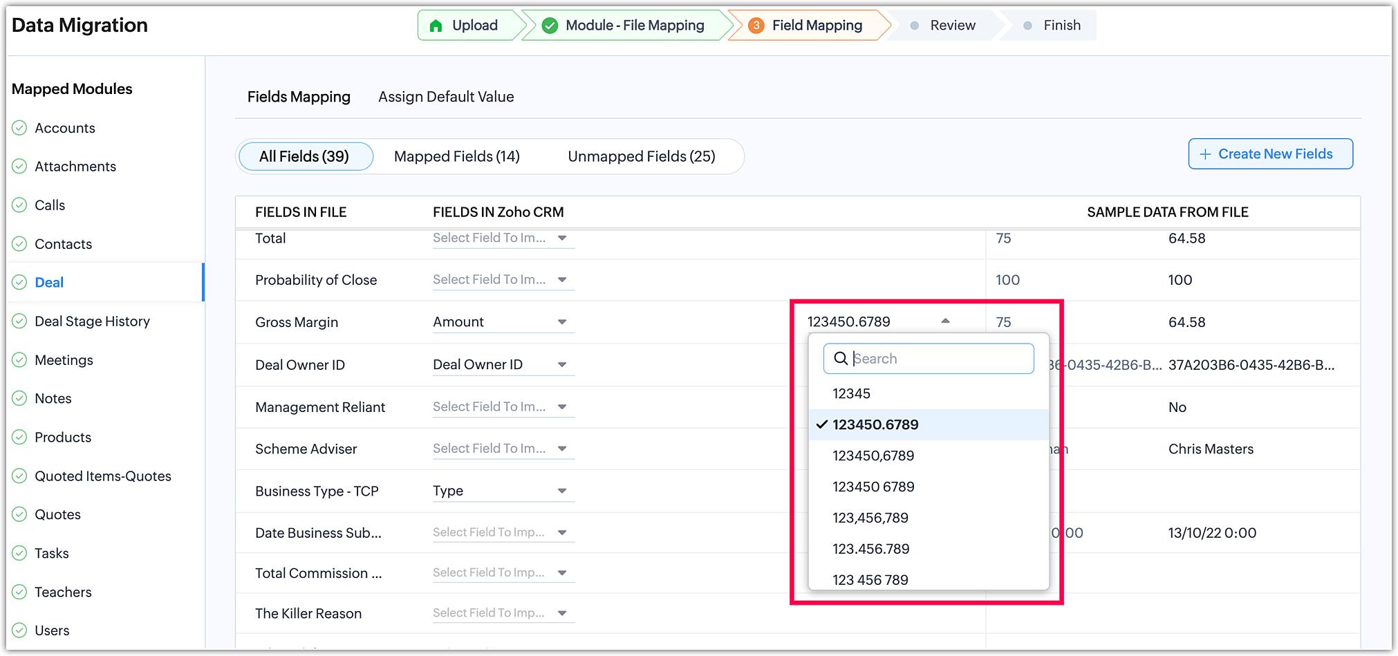 - Efectuează Maparea câmpurilor pentru a mapa câmpurile din fișierele tale la câmpurile corespunzătoare din Zoho CRM.