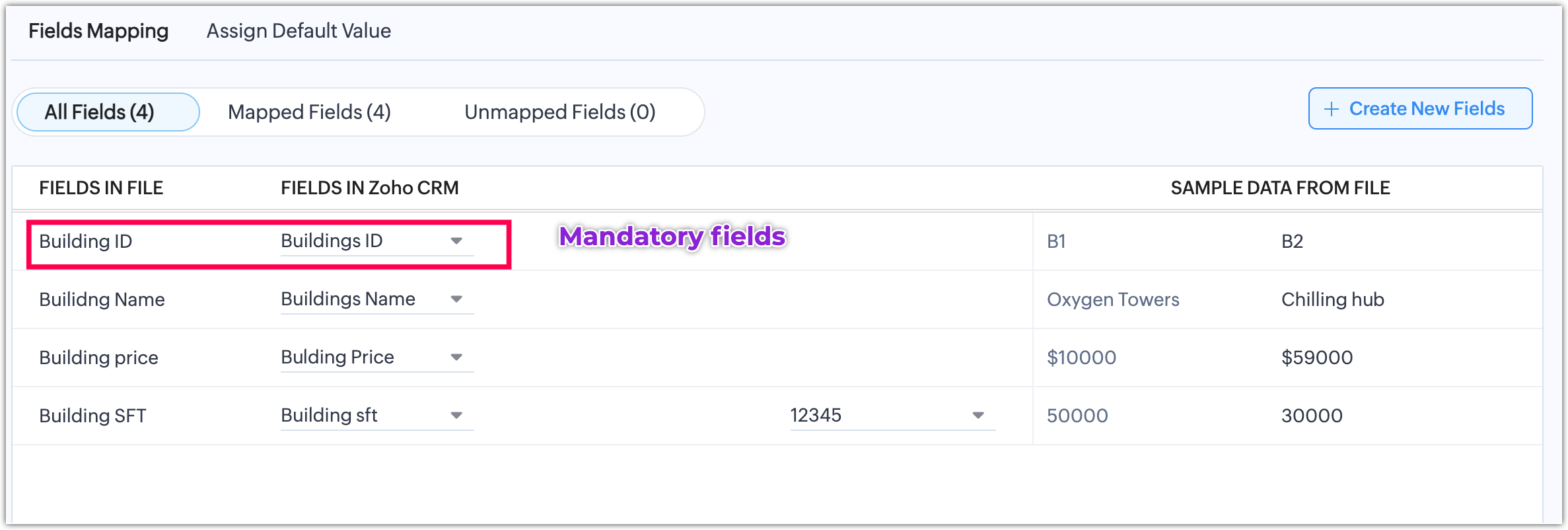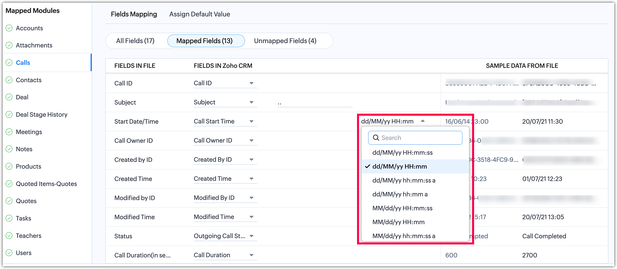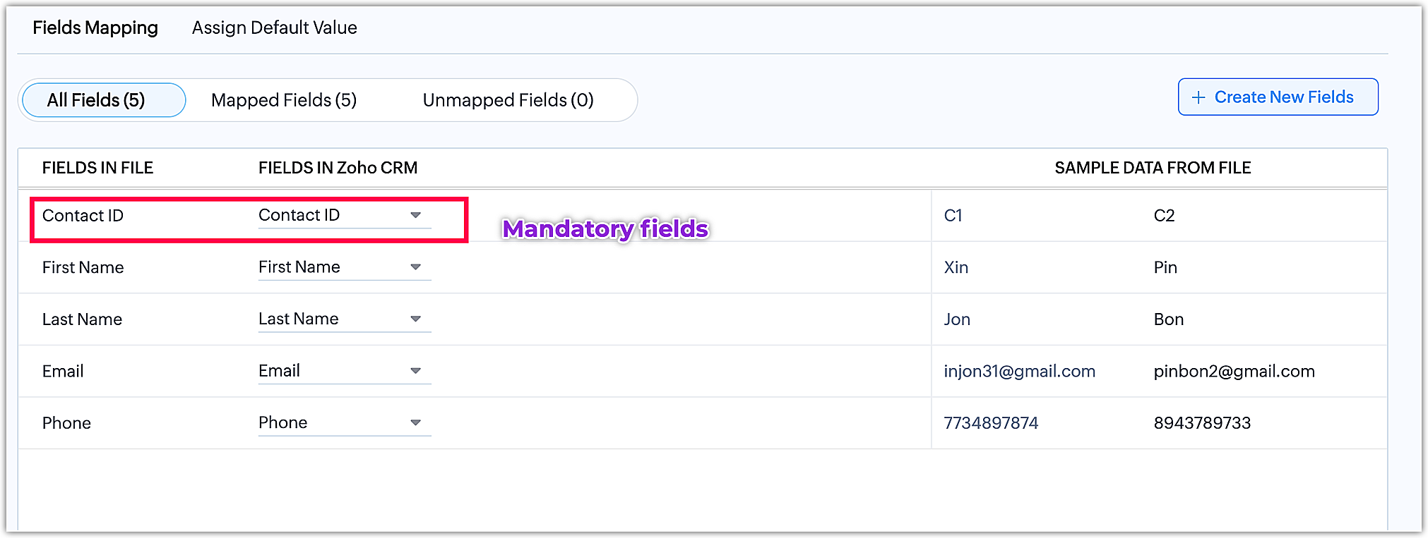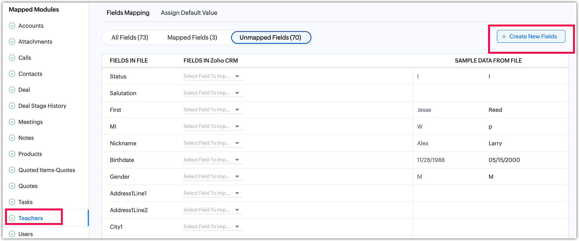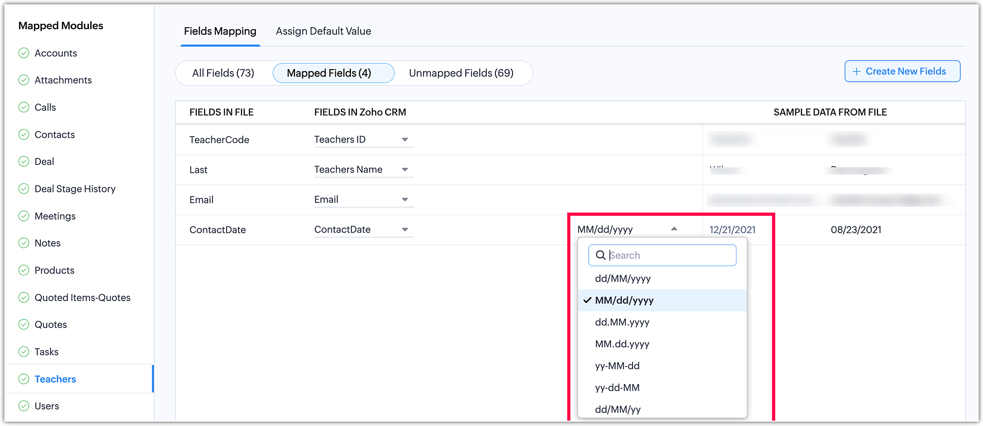 - Efectuează Maparea câmpurilor pentru a mapa câmpurile din fișierele tale la câmpurile corespunzătoare din Zoho CRM.