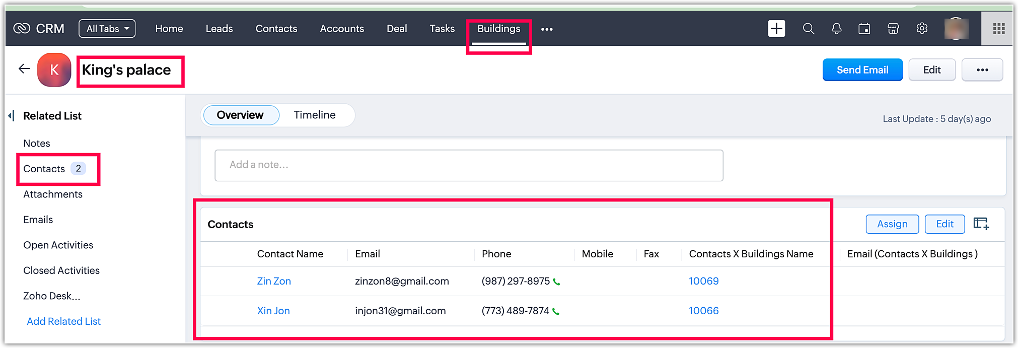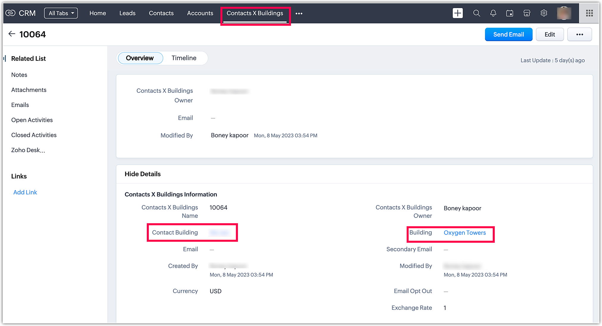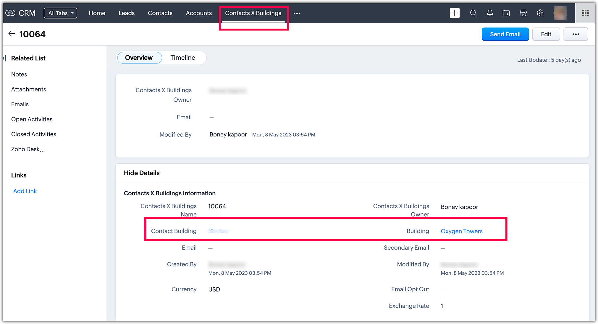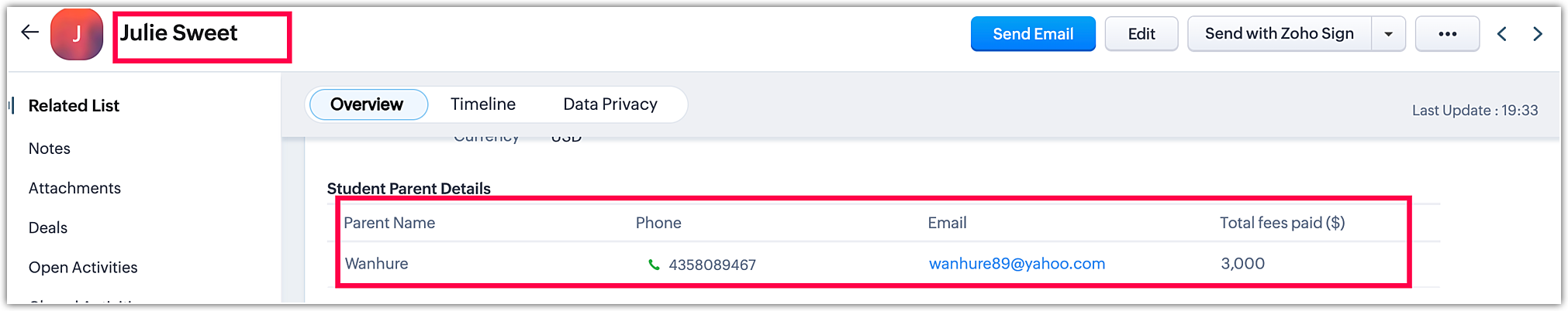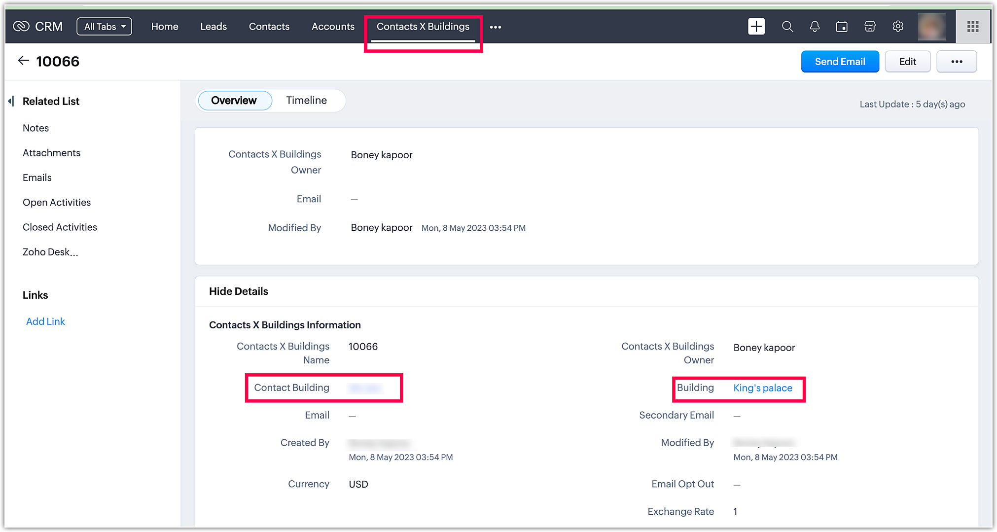 Când mergi la modulul Conturi și faci clic pe Zoho, poți găsi Contactul Sathish. Procesul este același pentru toate modulele.