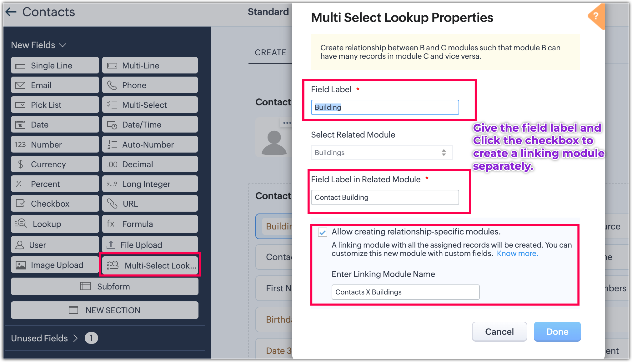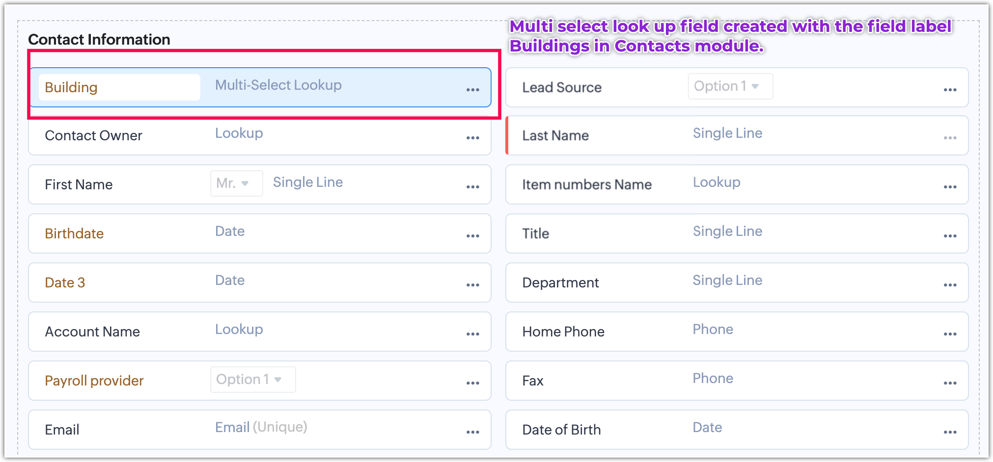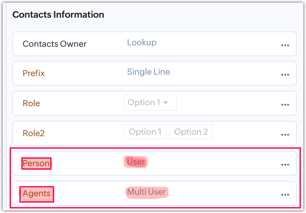 Acum, să creăm câmpurile de căutare Utilizator unic și Utilizatori multipli în modulul de contacte cu numele „Persoană și Agenți".