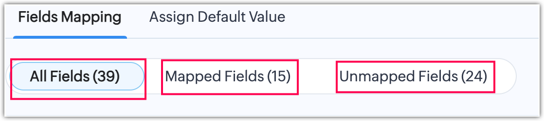 Statisticile câmpurilor (Toate câmpurile, Câmpuri mapate, Câmpuri nemapate) pot fi observate în bara de sus a mapării câmpurilor.