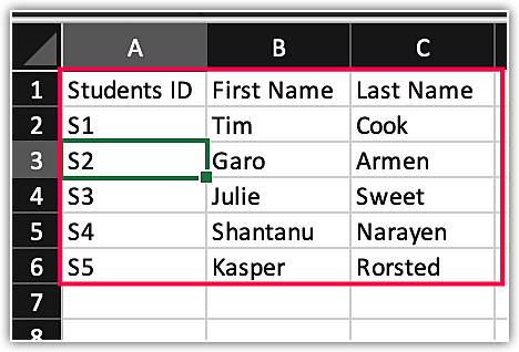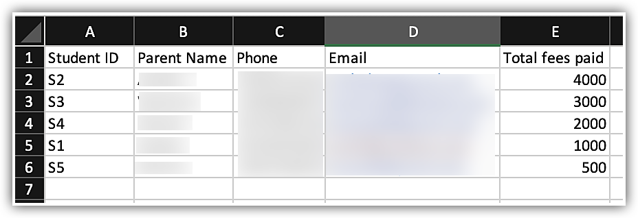 Pentru a asocia datele sub-formularului cu datele principale, fișierul sub-formularului trebuie să conțină ID-ul datelor principale (ID Student), după cum se demonstrează mai sus.