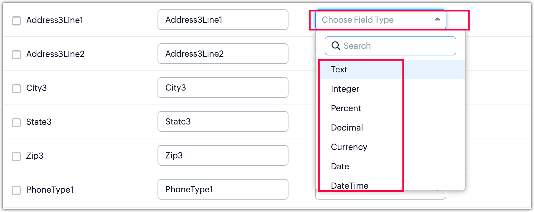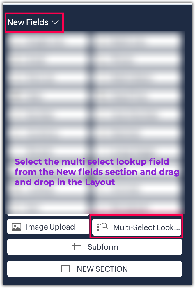 Pentru a crea câmpuri noi, trebuie să selectezi tipul câmpului din meniul derulant. Consultă imaginea de mai jos pentru a selecta tipul câmpului pentru a crea un câmp nou.