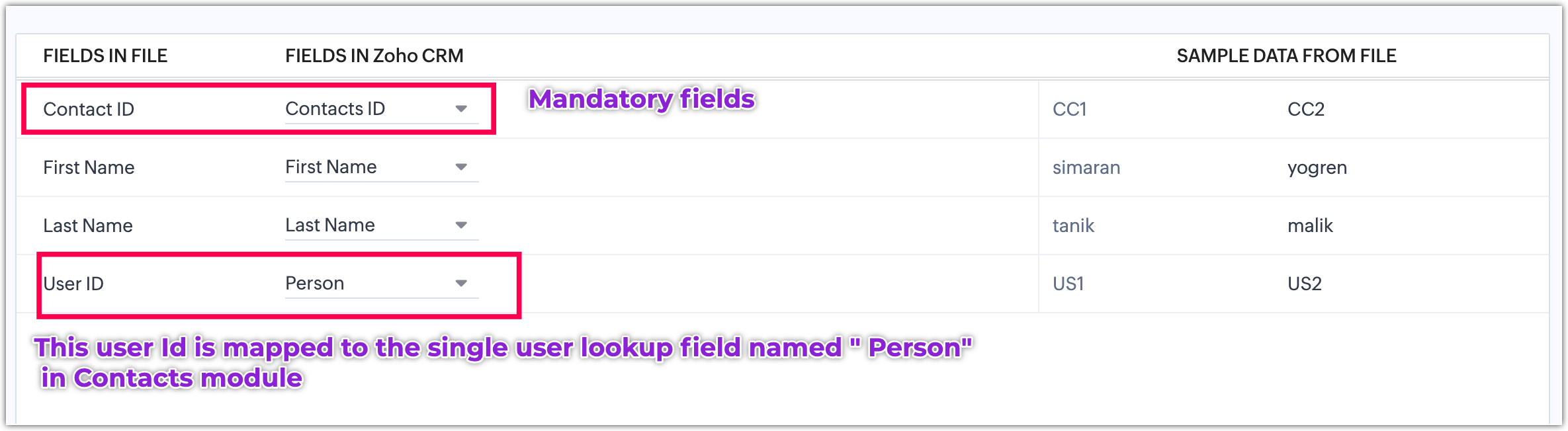 Cum migrez datele câmpului User Lookup în migrarea de date Zoho CRM?