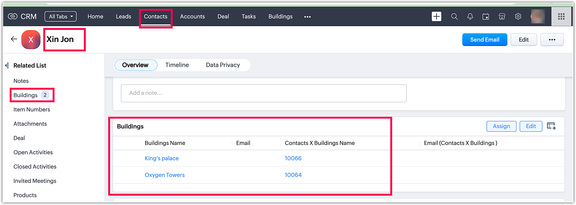 Conturile și Contactele sunt interrelaționate. Un Cont poate conține mai multe Contacte. Când deschizi înregistrările modulului Cont, poți vedea toate Contactele asociate. Acest lucru funcționează pur și simplu pe baza ID-urilor